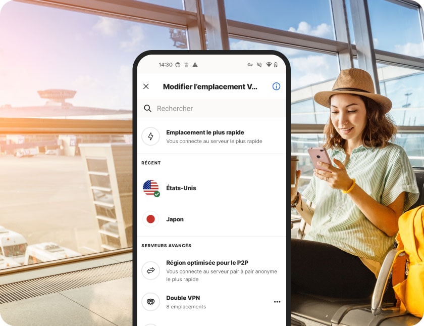 Notre application VPN pour Android offre une sélection de plus de 100 localisations de serveurs à haute vitesse dans le monde entier pour une liberté pendant les voyages.